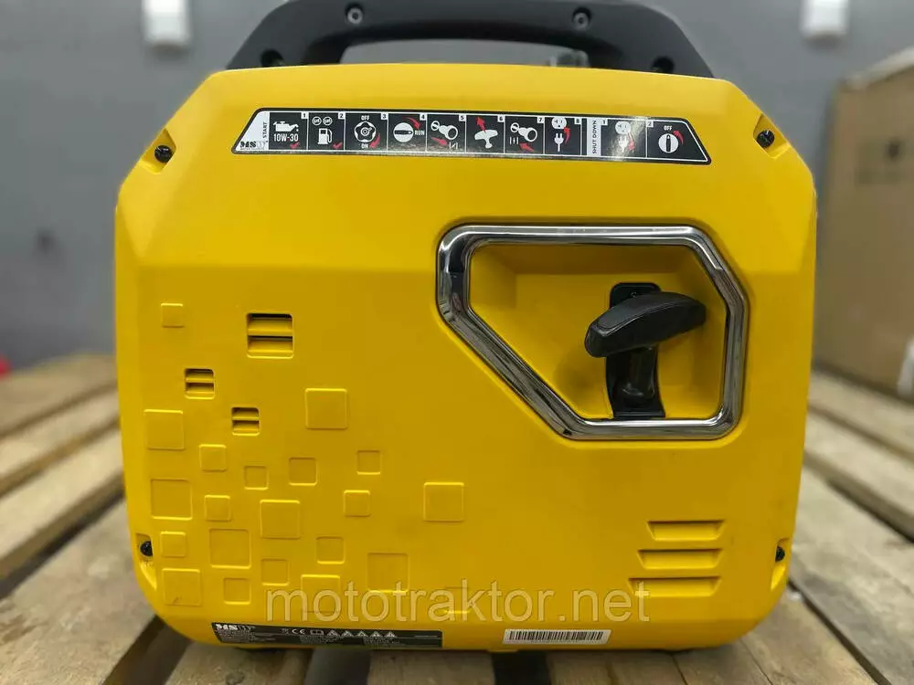 Генератор легкий і компактний, відрізняється безшумною роботою. Генератор має бензиновий двигун що генерує струм на виході 230/12v. Пристрій має високу вихідну потужність постійного струму 100 Вт і максимальну потужність 2100 Вт. 2100 W. Використана інверторна технологія забезпечує кращу продуктивність в порівнянні з іншими генераторами. Ємність паливного бака - 4 літри. Агрегат економно використовує паливо і має енергозберігаючий вимикач. Кришка паливного бака оснащена ручкою для запобігання витоку палива. Три світлодіоди інформують про роботу агрегату: зелений - під час запуску, червоний - при перевантаженні, жовтий - попереджає про недостатній рівень масла, червоний - при перевантаженні. Перед включенням електрогенератор повинен бути заземлений, для чого передбачена клема заземлення. Автоматичний пристрій захисту від перевантаження відповідає за безпеку в разі перевантаження забезпечує автоматичний вимикач. Агрегат може працювати паралельно з іншою генераторною установкою, оскільки вона має спеціальну клему. Генераторна установка здатна живити чутливу електроніку, таку як комп'ютери, прилади з цифровим управлінням, гаражні ворота тощо, завдяки стабільній напрузі, яку вона генерує.