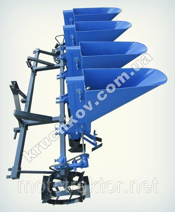 Эта чеснока сажалка агрегатируется с минитракторами мощностью от 18 до 35 л.с. Конструкция прицепного узла предусматривает трехточечную крепь и возможность использования гидравлического подъема, что делает агрегат удобным в работе и транспортировке.