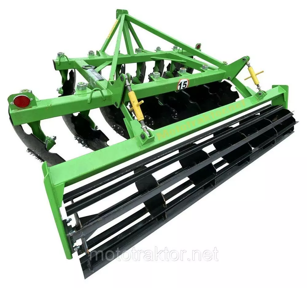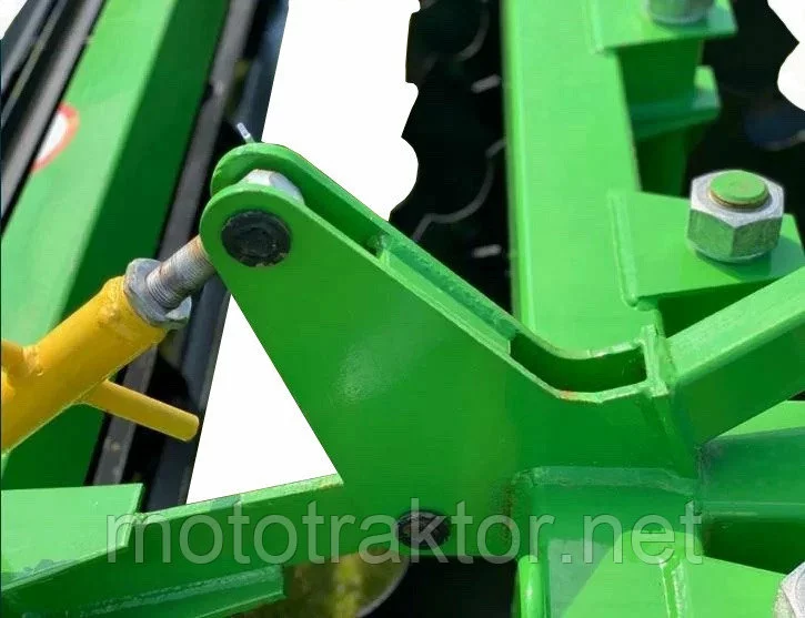 Равномерное заглубление первого и второго ряда дисков, регулируется центральной тягой навески трактора.