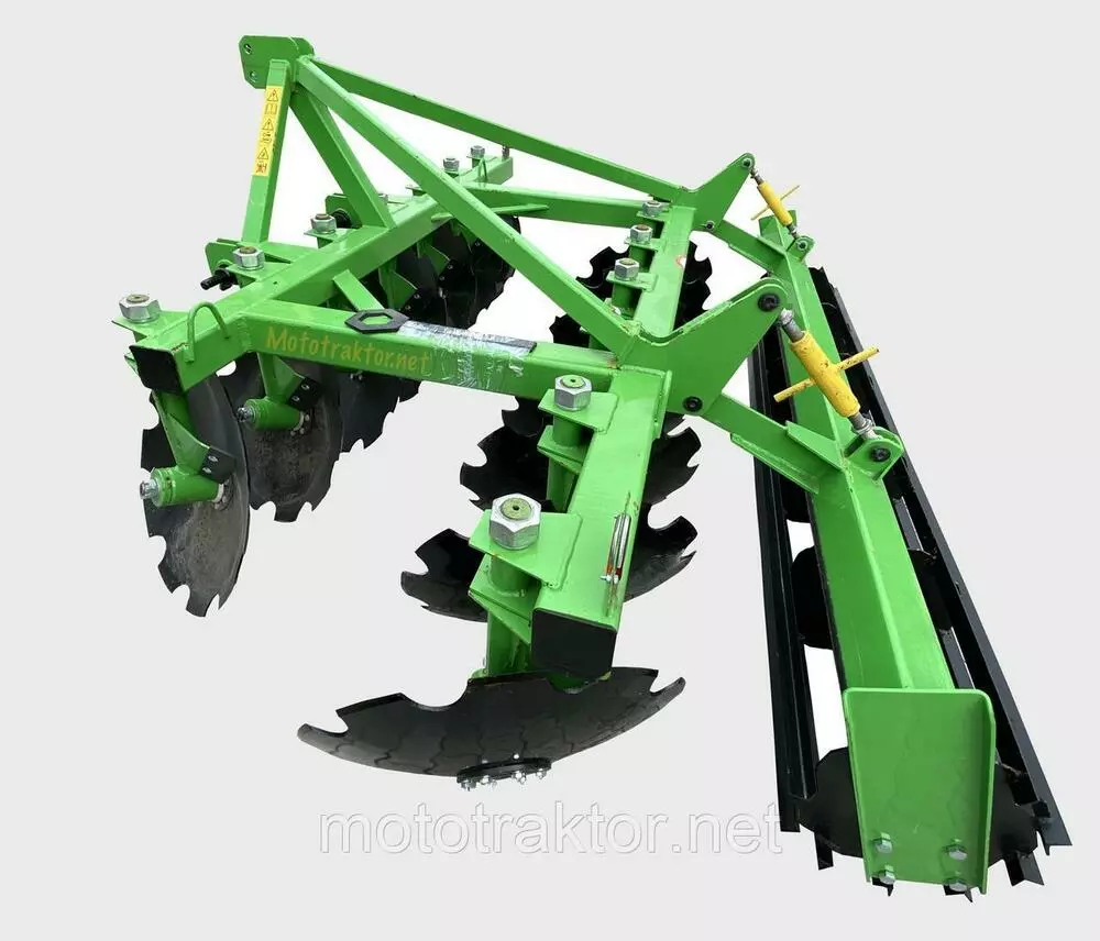 Равномерное заглубление первого и второго ряда дисков, регулируется центральной тягой навески трактора.