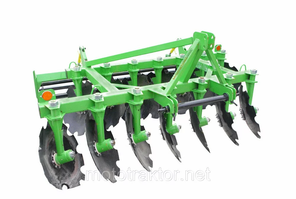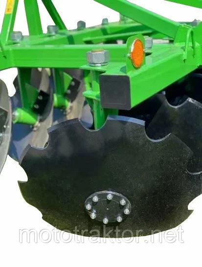 Равномерное заглубление первого и второго ряда дисков, регулируется центральной тягой навески трактора.