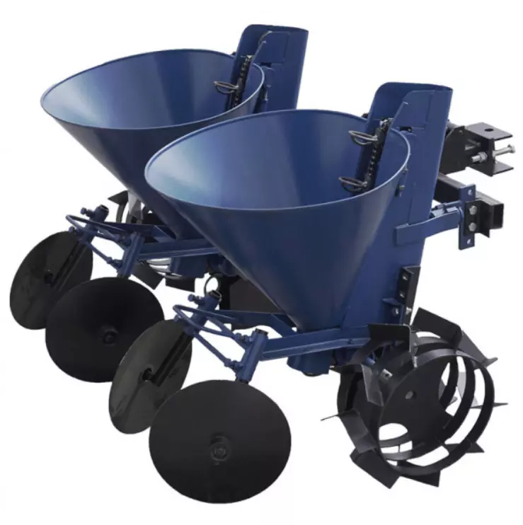 Прицепное устройство: рама с возможностью установить две сажалки на фиксированном междурядье – 600мм.