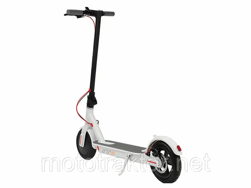 Самокат с электрическим передним приводом бесшумен, вытянет в случае съезда с асфальта и не даст застрять в твёрдом грунте. Цельные литые шины 8.5" дюймов - это спасение от мелких неприятностей и больший срок службы, без лишних расходов! Рекомендуемый ландшафт - асфальтированные и дорожные покрытия. Для маневрирования в толпе людей модель TTG F6 36V350W оснащена дисковыми тормозами. Безопасность на дороге обеспечат боковые катафоты, отражатели и стоп сигналы. Мощная светодиодная фара с направленным светом не слепит прохожих и экономично расходует батарею.