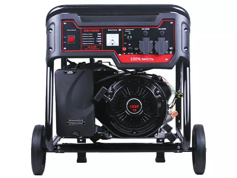 Бензиновый генератор ТАТА UG10000 – мощная и надежная однофазная электростанция с максимальной мощностью 7 кВт. Аппарат незаменим при работе с профессиональным оборудованием. Является незаменимым источником электропитания при резервировании сети в загородном доме. А при работе на строительных объектах особенно актуальна повышенная прочность усиленной рамы, что гарантирует данная модель. Бензогенератор ТАТА UG10000 оснащен двумя розетками на 220В / 16А и силовой розеткой на 220 В для подключения энергоемких потребителей.Генератор бензиновый TATA UG7500 6 KW — надежный бензиновый генератор, который обеспечит работу электроприборов при отсутствии электроэнергии.