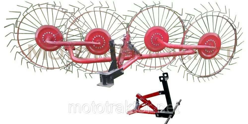 Эти универсальные грабли можно подсоединить к мотоблоку, минитрактору на базе мотоблока и к трактору. Подсоединяются через соответствующее крепление (приобретается отдельно).