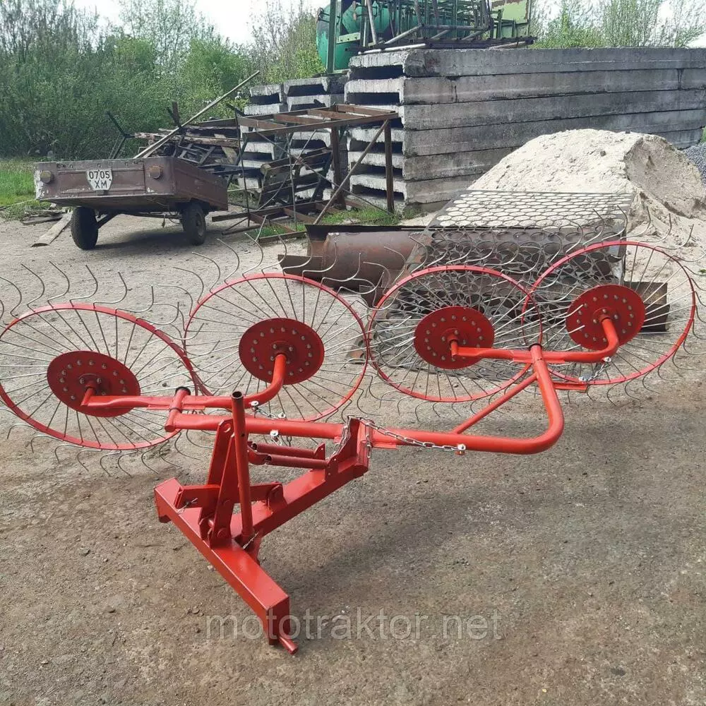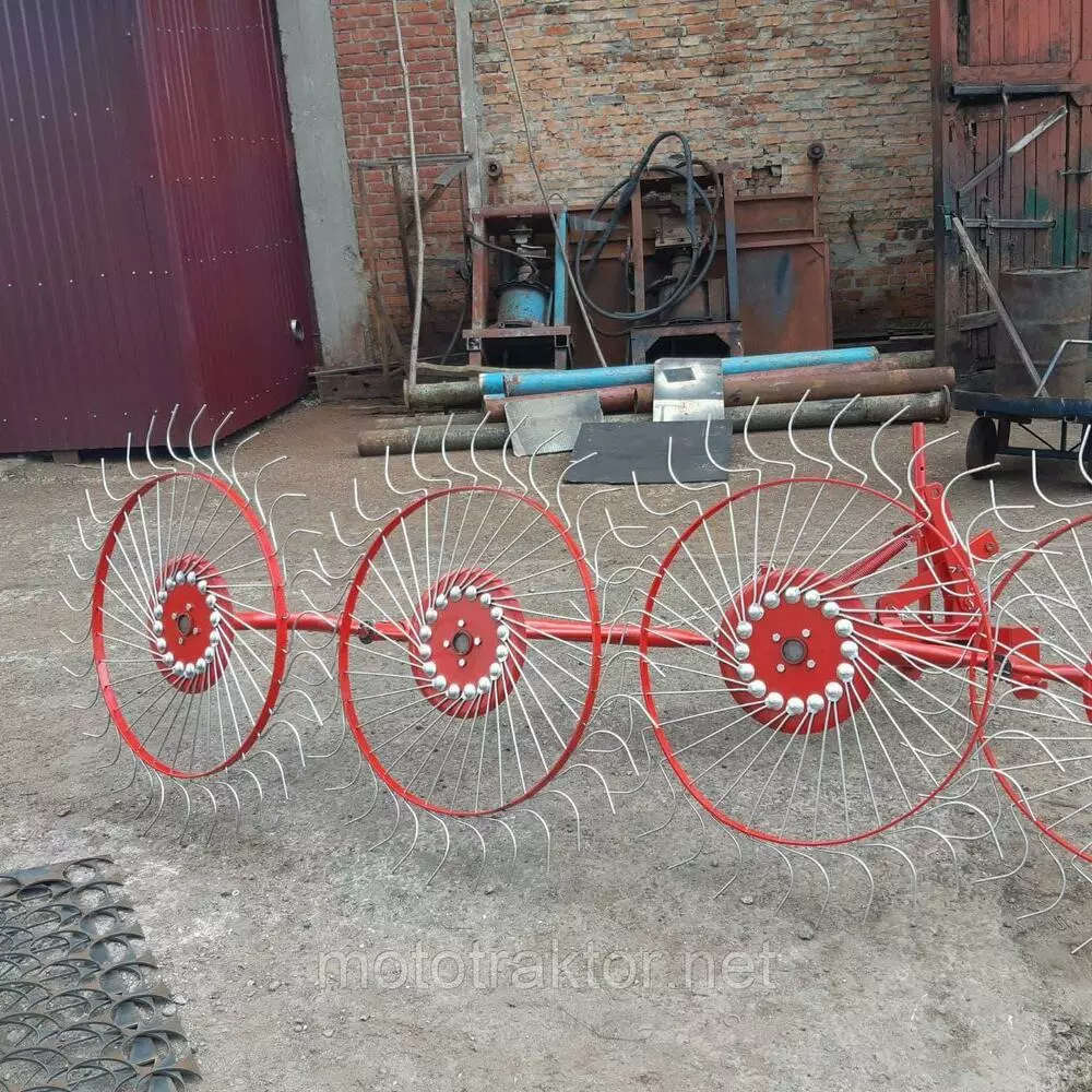 Грабли солнышко 4 колеса Wirax (2.0)Грабли-ворошилки или как их называют грабли солнышко (граблі сонечко). Основное назначение - переворачивание сена во время сушки (ворошение) и для сгребания различной травы и формирования валков.