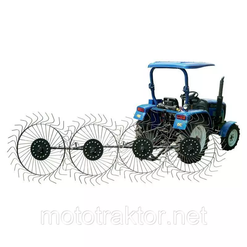 Грабли солнышко (ворошили) 4 колесаГрабли механические «Солнышко» 4-ряда. (ГР6) – это надежное и производительное навесное оборудование для сбора и заготовки сена. Модель рассчитана на работу с минитракторами и тракторами, оборудованными трехточечной системой навеса. Идеально подходит для фермерских хозяйств и частного использования.