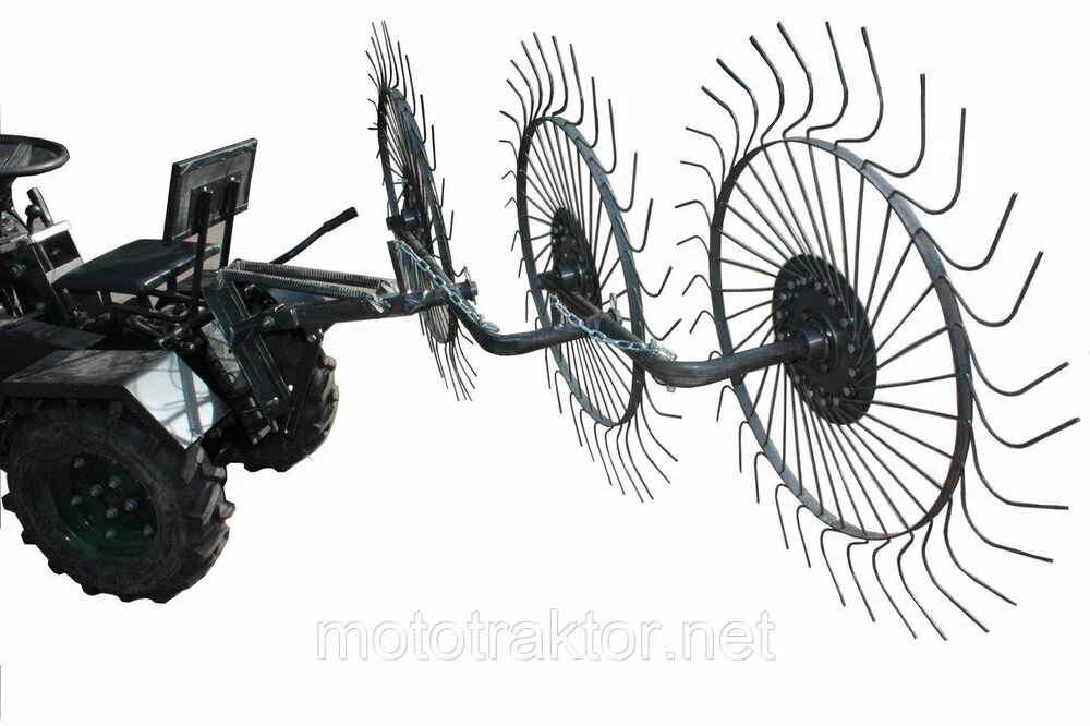 Грабли механические «Солнышко-3х рядные» (ГР4) — это навесное оборудование для мототракторов, предназначенное для сбора сена. Они имеют прочную конструкцию, простой способ использования и высокую производительность, поэтому хорошо используются как фермеры, так и владельцы частных хозяйств.