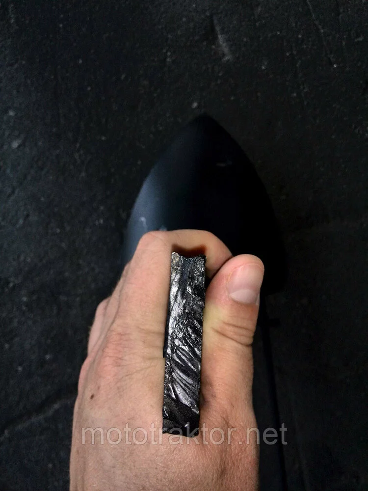 Основа конструкции – это стойка из стальной полосы размером 10×50×500 мм. Она имеет 7 отверстий диаметром 12,5 мм под болты М12, что позволяет точно регулировать глубину копания. Рабочая лопата толщиной 3 мм изготовлена из качественной стали. Расстояние от носика лопаты до места соединения со стойкой – 300 мм. Для повышения прочности предусмотрен усилитель из листовой стали толщиной 4 мм и подошва толщиной 6 мм.