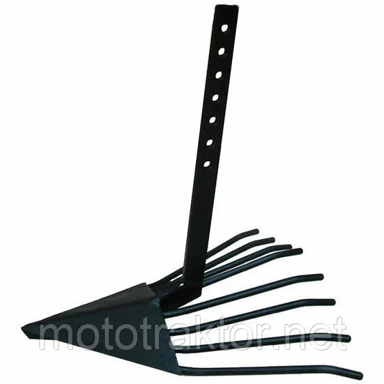 В задней части копалки установлено 8 зубцов из стального прута Ø10 мм. Они эффективно просеивают землю и отделяют клубни картофеля от почвы. Общая длина устройства – 550 мм, максимальная ширина – 350 мм.