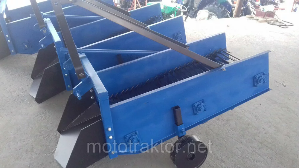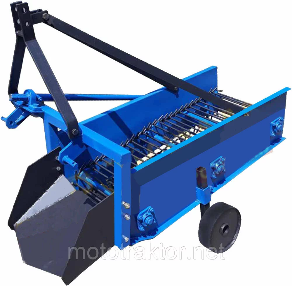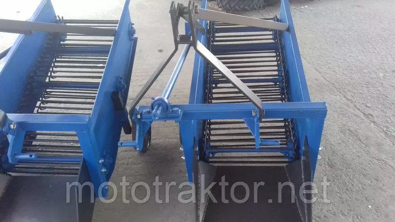 Картофелекопалка Украинского производства. Выполнена из качественных материалов. Усилен транспортер. Нож изготовлен из высокопрочной стали. Усовершенствованная конструкция ножа и угол атаки, позволяют без проблем входить в почву и выкапывать картофель.