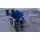 Картофеле Сажатель Мотоблочный — 1 ряд, транспортер Ленточного типа, сажалка синего цвета с транспортировочными колесами