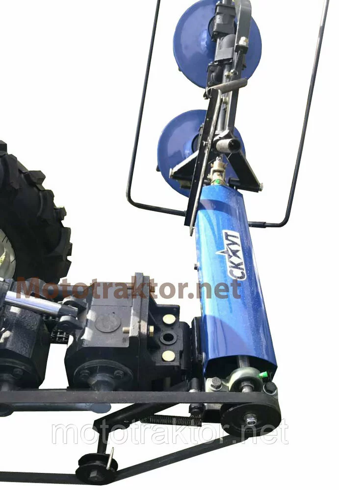 Роторная косилка агрегатируется с мототракторами от 10 до 25 л.с и может осуществить покос на большой территории за короткий промежуток времени.