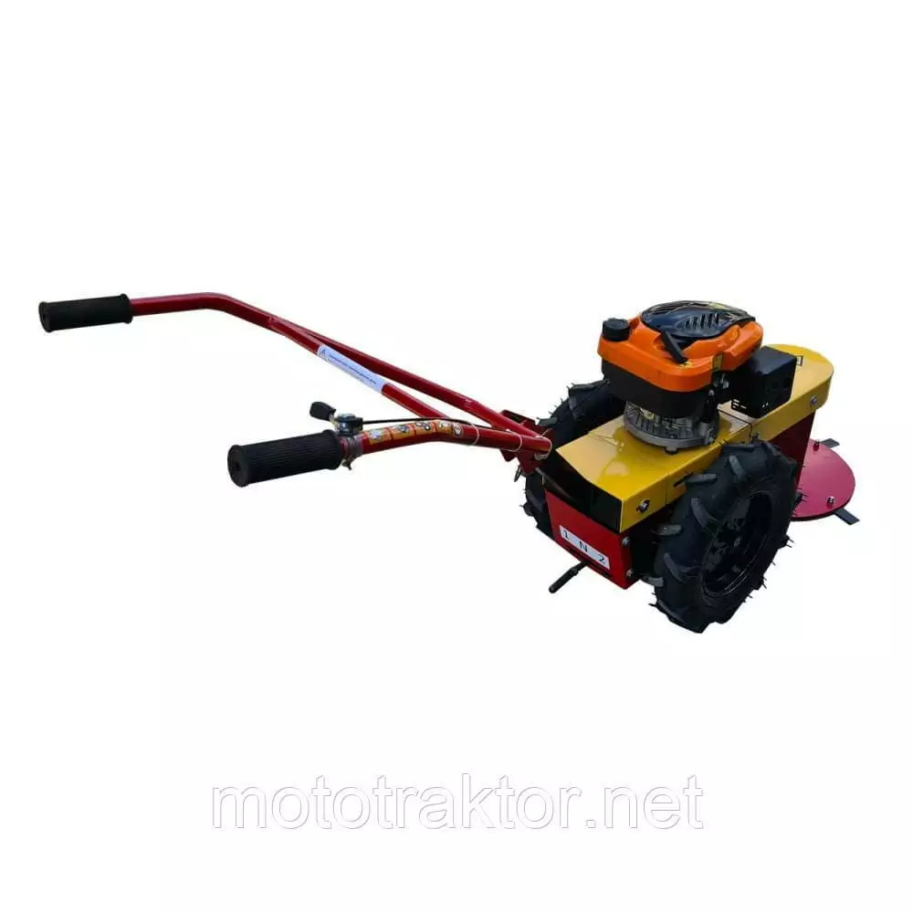 Удобство косения данной косилкой является то, что ее особо не нужно настраивать для работы, так как она является самоходным комплексом, который выполняет косение обеспечивая самостоятельное движение с разными скоростями (оборудовано 1 и 2 передачами вперед, которые легко переключаются специальным рычагом). Мощная конструкция рабочих огонов обеспечивает качественное кошение, складывая в покос на уровне большой сельхозтехники.