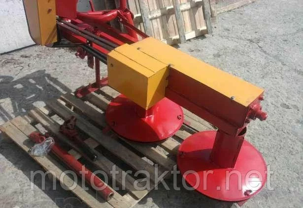 Косилка является облегченным вариантом и аналогом польской роторной косилке комплектуется карданным валом. Также в комплектацию входит запасной набор режущих ножей. Режущие элементы выполнены с термической обработкой, что позволяет увеличить ресурс данных элементов роторной косилки.