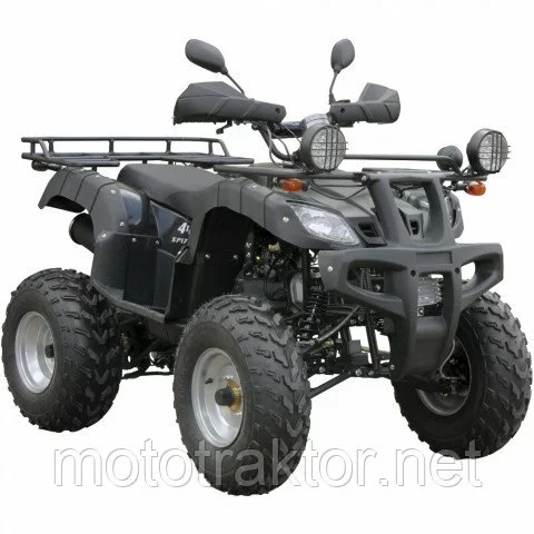 двигатель с маслянным охлаждением, с задним ходом, колеса 23*7-10 / 22*10-10, передние и задние дисковые тормоза, сигнализация, электронный спидометр, 2 передние дополнительные фары, защита рук, зеркала заднего вида
