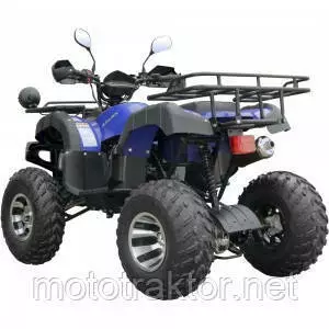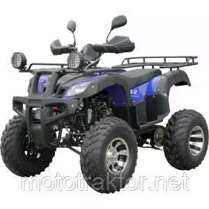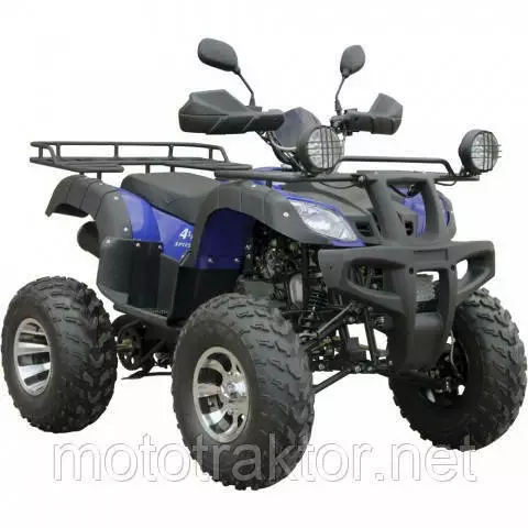 Двигатель с маслянным охлаждением, с задним ходом, колеса 23*7-10 / 22*10-10, передние и задние дисковые тормоза, сигнализация, большой электронный спидометр, 2 передние дополнительные фары, защита рук, зеркала заднего вида, литые диски