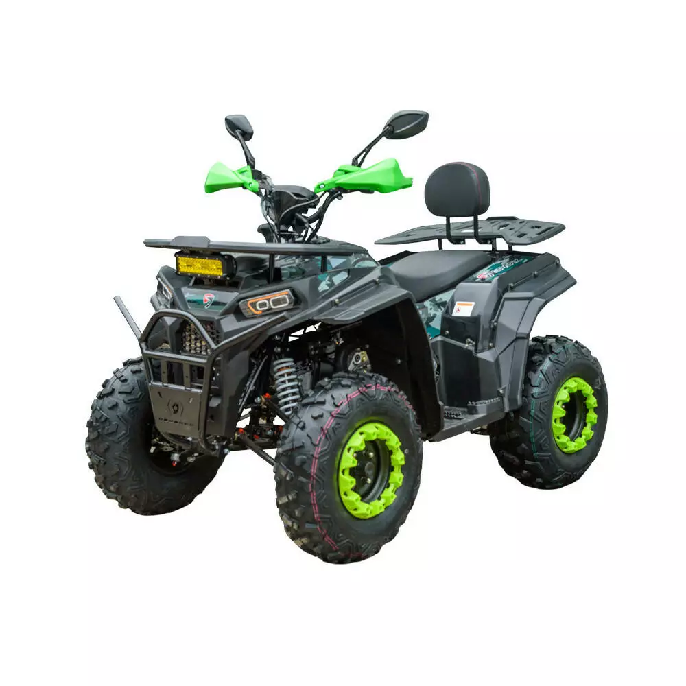 Квадроцикл оснащён проверенным одноцилиндровым 4-тактным двигателем объёмом 200 куб. см, который легко справляется с подъемами, грязью и лесными тропами. Ручная коробка передач и задняя передача позволяют уверенно управлять квадроциклом в любых условиях. Увеличенный дорожный просвет и усиленная подвеска обеспечивают отличную проходимость.
