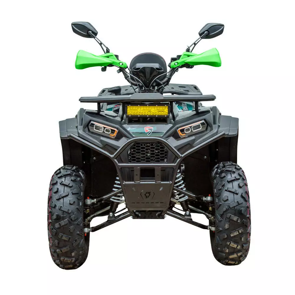Квадроцикл оборудован светодиодной оптикой, зеркалами заднего вида, защитой рук и багажниками спереди и сзади — идеальный выбор для перевозки снаряжения. Тормозная система гарантирует надежную остановку в любых условиях.