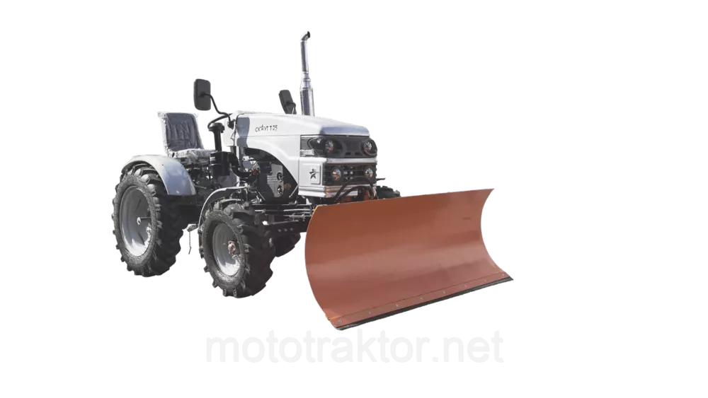 Лопата-отвал может быть использована с заводскими мототракторами. Основными элементами являются: ковш лопаты или отвал, демпфер, кронштейн подъема и две регулируемые лыжи.