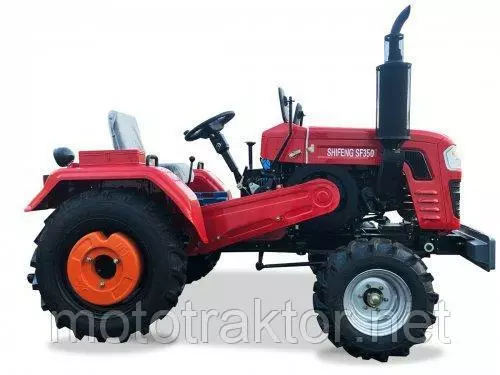 Минитрактор SHIFENG SF-350 на дизельном двигателе (водяное охлаждение) является популярной моделью техники среди владельцев больших земельных участков, огородов или дач. Трактор оборудован ременным приводом на коробку передач, трехточечной системой навесного оборудования и валом отбора мощности 720 об/мин. Установлено сидение с амортизатором, усиленный аккумулятор 80 А/ч, зеркала заднего вида, блок управления света и зажигания под рулем.