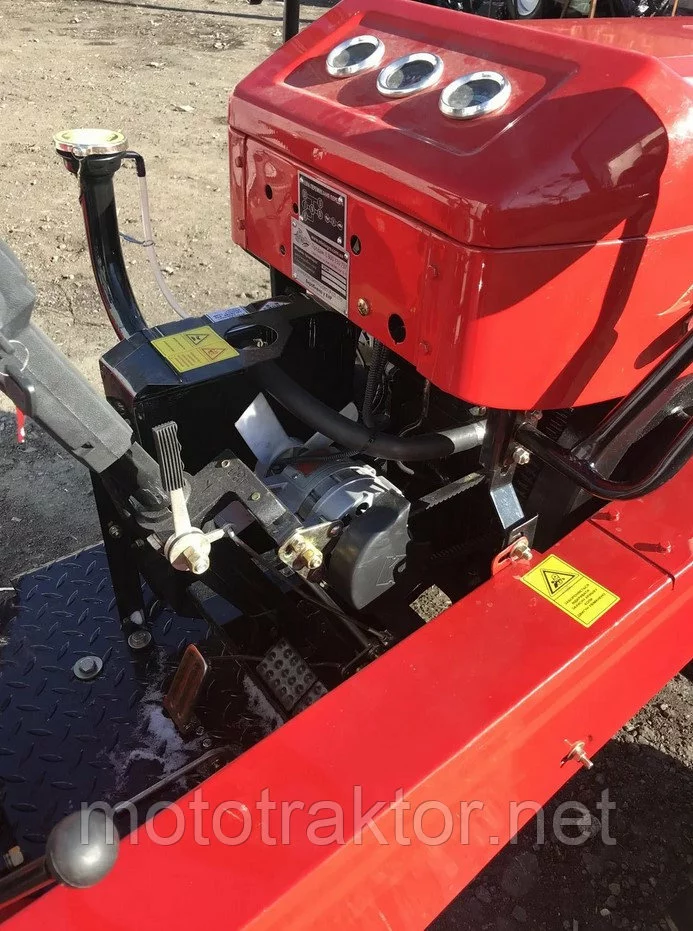 Трактор Shifeng SF244 оснащен дизельным двигателем мощностью 24 л.с., оборудован блокировкой дифференциала и задним валом отбора мощности. Тяговое усилие составляет 6.2 кН. Водяное охлаждение позволяет работать длительное время без перегрузок.