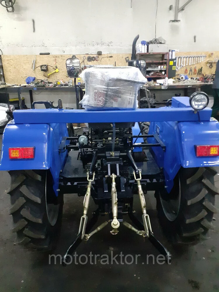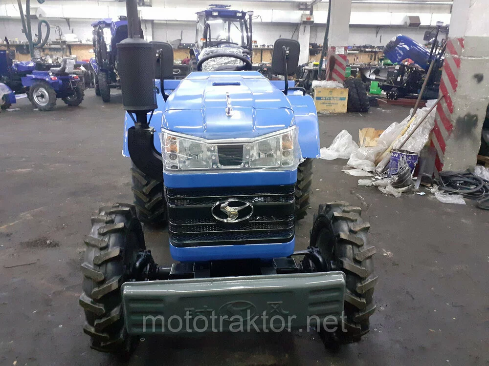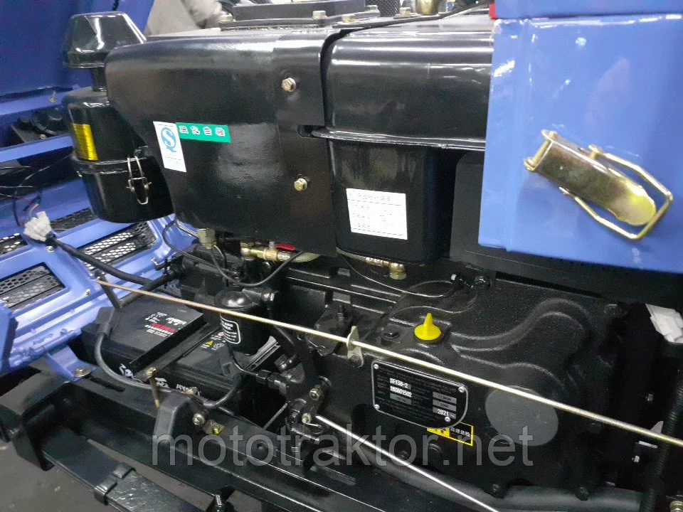 Трактор Shifeng SF244 B оснащен дизельным двигателем мощностью 24 л.с., оборудован блокировкой дифференциала и задним валом отбора мощности. Тяговое усилие составляет 6.2 кН. Водяное охлаждение позволяет работать длительное время без перегрузок.