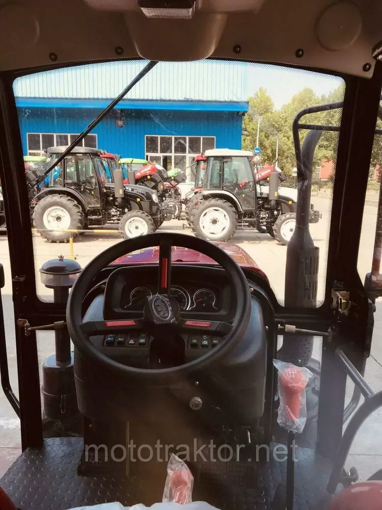 Стандартная комплектация: 2-х скоростной ВОМ - 540/100 об/мин, 2 пары гидравлических выводов, пневмопривод тормозов прицепа, кабина, гидроусилитель руля, инструментальная панель, зеркала.