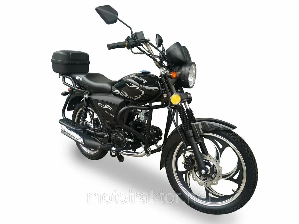 Упомянем также о том, что на мопеде Musstang Alfa МТ125-8 установлен руль из нержавеющей стали с увеличенной высотой, который более удобен в управлении, а также стандартным опционом являются мотоциклетные зеркала заднего вида. Они больше по площади и в их конструкции предусмотрен винт-фиксатор положения, который избавит владельца от постоянных корректировок выставленного положения.