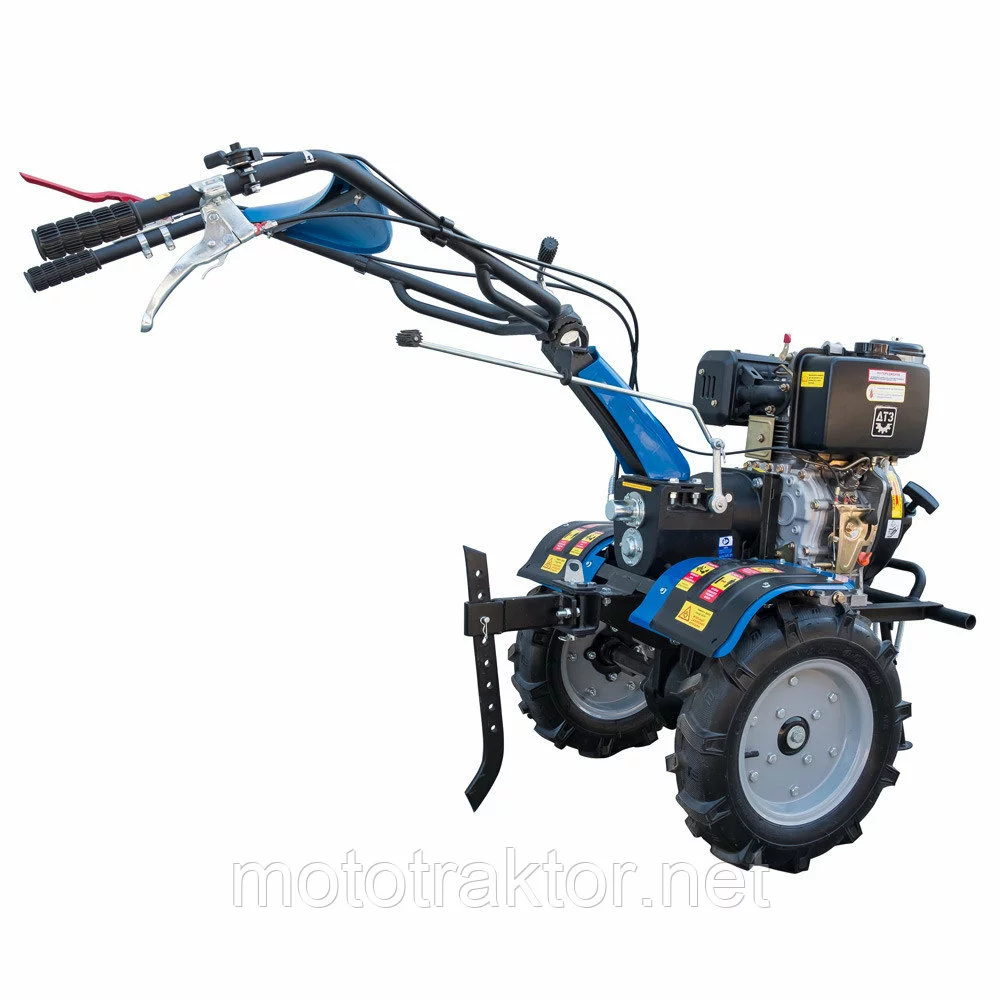 Основное отличие ДТЗ 510ДН от ДТЗ 570БН — это использование дизельного двигателя мощностью 10 л. с. В остальном они конструктивно и функционально очень похожи. Прямой привод коробки передач, через новое безопасное нормально разомкнутое сцепление. Блокировка рычага заднего хода от случайного включения. Наличие на транспортных колесах обгонных разблокираторов, которые значительно облегчают поворот и разворот мотоблока. Большие колеса 4.00-10 и 8-секционная фреза с максимальным захватом 1140 мм. При этом даже плотные почвы качественно разрыхляются на необходимую глубину за один проход.Дизельный двигатель ощутимо экономнее бензинового, лучше выдерживает длительную работу под нагрузкой, сохраняет высокий крутящий момент при снижении оборотов, а значит, и тягу. Он более долговечный и экологичный, не требует регулировки карбюратора и системы зажигания, для облегчения запуска при низкой температуре оснащен декомпрессором. Благодаря большему весу улучшается сцепление транспортных колес с дорожным покрытием или почвой. Этот мотоблок полностью подходит не только для работы в домашних хозяйствах, а и может профессионально использоваться на огородных, садовых и тепличных комплексах, а также как средство для перевозки грузов на специальном прицепе.
