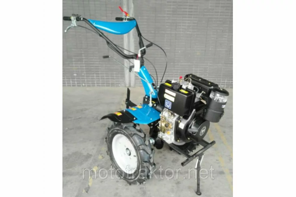 Как уже говорилось ранее, данный мотоблок оснащен мощным дизельным мотором с воздушной системой охлаждения. Номинальная мощность такого мотора составляет 12 л.с. Такая, довольно большая мощность, а также высокое тяговое усилие, создаваемое двигателем, гарантируют мотоблоку высокие показатели производительности для выполнения необходимых работ. Этот двигатель имеет повышенный ресурс работы и характеризуется невысоким удельным потреблением топлива.