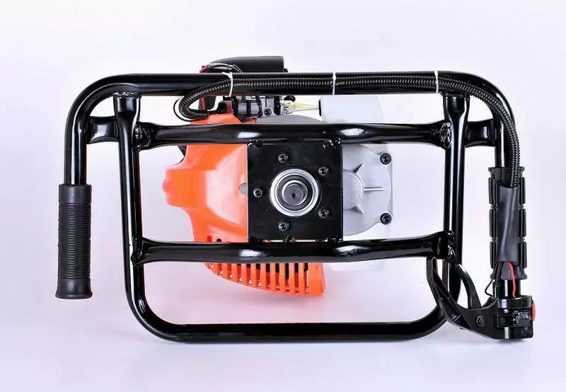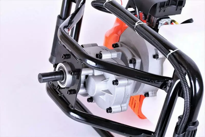 Бензиновый мотобур (без шнека) MB MD9680 оранжевый - портативная установка для бурения отверстий в грунте либо во льду. Область применения бура охватывает строительные и садовые работы, рыбные хозяйства. Будет полезен любителям зимней рыбалки.Мотобур состоит из двигателя объемом 52 см³ и мощностью 2 л.с. и бура. Двигатель работает на смеси бензина Аи-92 с маслом для двухтактных двигателей в пропорции 25:1. Которую готовят непосредственно перед применением и заливают в бак емкостью 2 л.