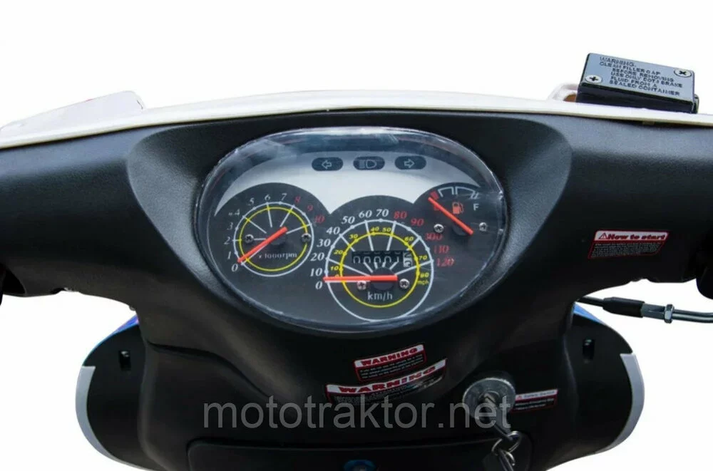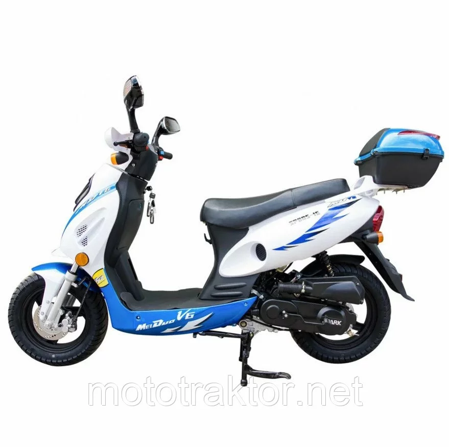 Энергетическое “сердце” мотороллера - современный бензиновый двигатель, объемом 80 куб.см и мощностью 3,4 лошадиных сил, оснащен эффективным воздушным охладителем. Поэтому переживать о перегревании двигателя его хозяину не придется беспокоиться.