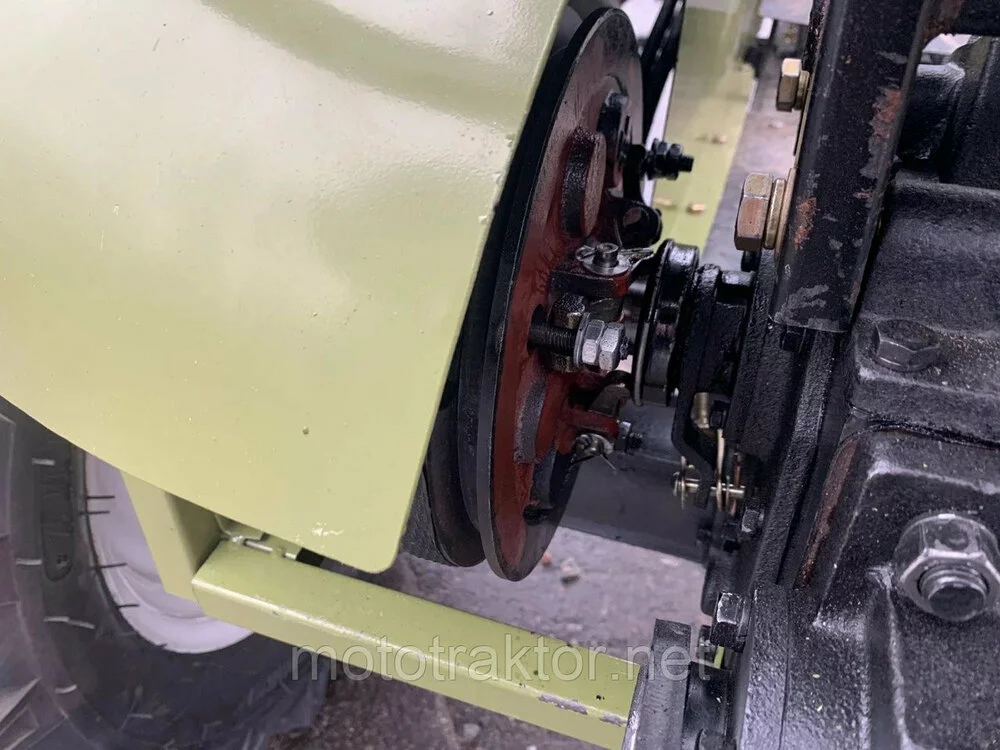 Смазка внутри мотора маслом проходит шестерёнчатым насосом и разбрызгиванием. Крупные колёса положительно сказываются на передвижение по любым поверхностям, а их шевронный рисунок на протекторе обеспечивает максимальное сцепление даже на влажном грунте, диаметр передних — 12”, а задних — 16”, такие характеристики позволяют легко перемещаться даже с тяжёлым прицепом, не говоря уже про продуктивное навесное оборудование и не дадут вам забуксовать даже на сложных участках.