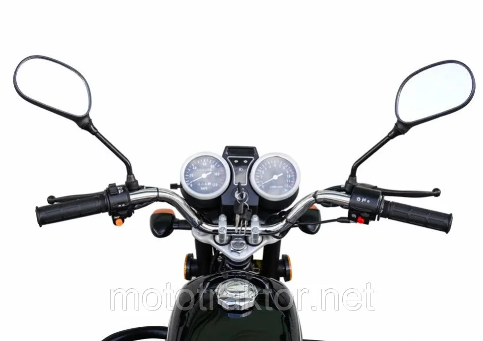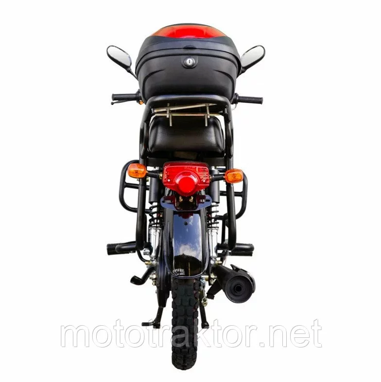 Дуплексная рама мотоцикла достаточно жесткая и хорошо противостоит скручиванию – это важно для сохранения управляемости на плохой дороге. Одноцилиндровый четырехтактный двигатель модели 1R52FMH имеет рабочий объем 107 см3, развивает мощность 6,8 л. с. и позволяет мотоциклу развивать максимальную скорость до 85 км/ч. Запуск двигателя производится электростартером или кикстартером. Карбюратор лицензионный японский, обеспечивает хорошую динамику разгона, но при этом весьма экономен: расход бензина всего около 2,0 литров на 100 км в крейсерском режиме движения. Имеется дополнительный сменный фильтр для лучшей очистки топлива.
