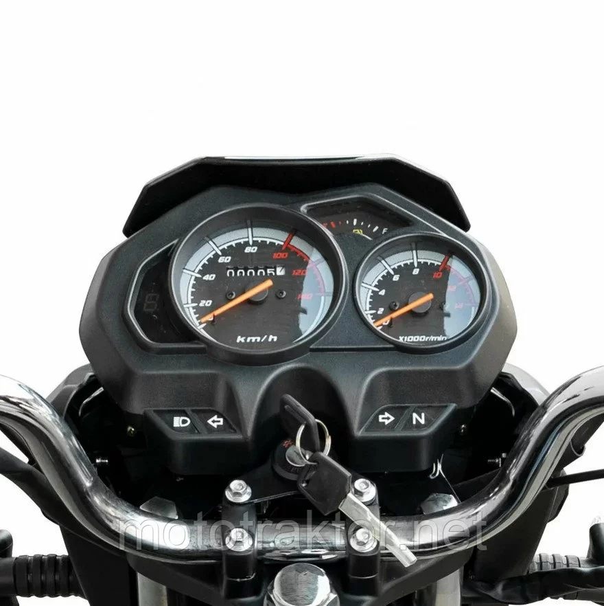 • Большая комбинированная панель приборов: спидометр/одометр, тахометр, указатель уровня топлива, дальний свет, повороты, нейтраль.