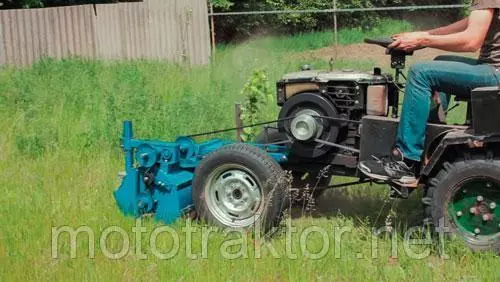 Крутящий момент от шкива двигателя через ременную передачу передается в редуктор, далее — цепную систему на вал с ножами, что позволяет эффективно обрабатывать растительные остатки без перегрузки двигателя.