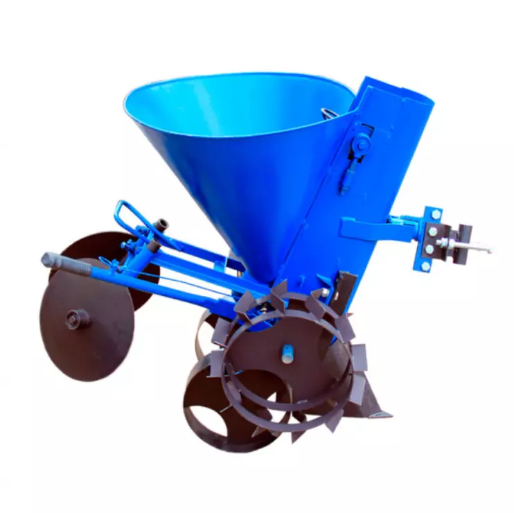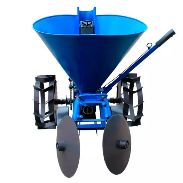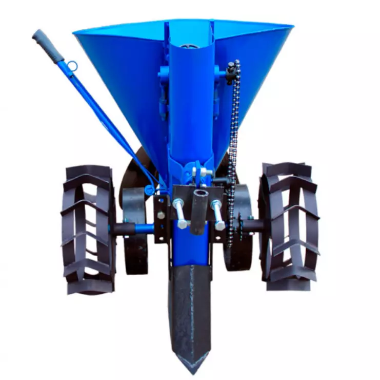Эта ленточная картофелесажалка обеспечивает четкую посадку в два этапа: нарезку борозды сошником и последующую присыпку в обратном ходе. Благодаря транспортным колесам развороты быстры и удобны. Надежная конструкция, регулируемые параметры и крепкий бункер делают ее универсальной и эффективной как для дачных, так и для фермерских нужд.