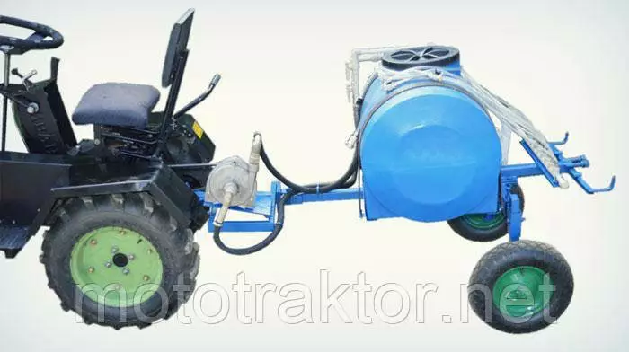 Опрыскиватель подсоединяется к навесному (прицепному) механизму мототрактора.