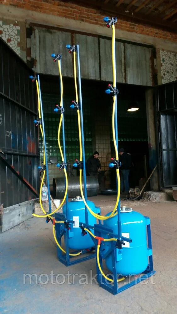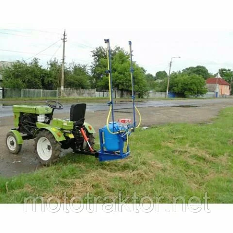 Универсальный опрыскиватель, может применятся с мототракторами и мотоблоками. Поставляется в двух комплектациях, с компрессором и без него.