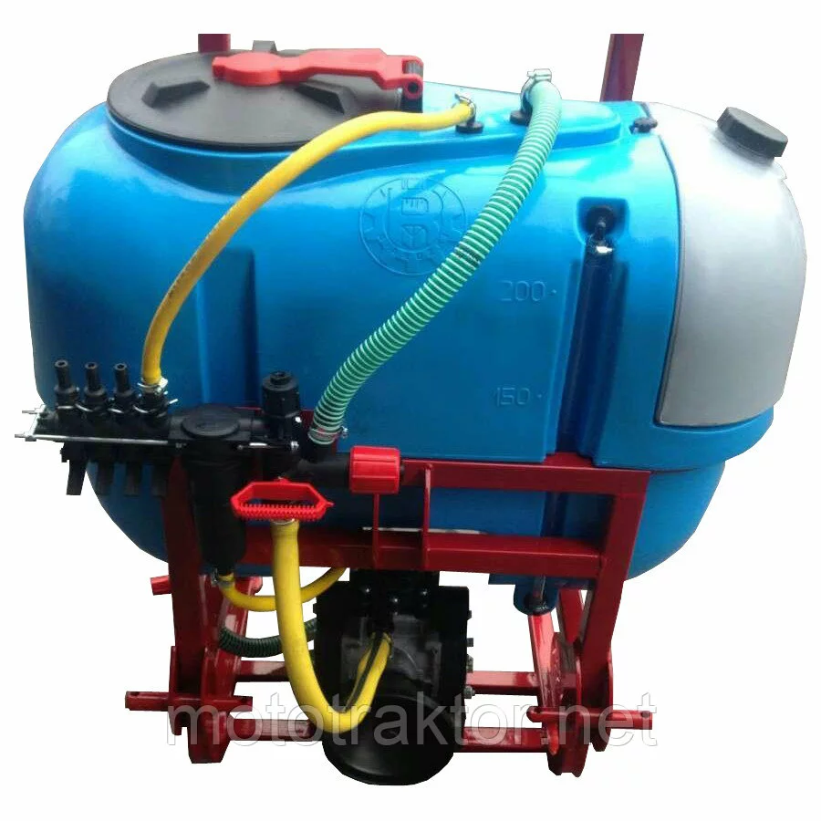 Резервуар для раствора, установленный в закрытую раму с раскидными штангами, удерживающие армированные шланги, с подсоединенными форсунками, идущие от распределителя с высокоточным глицериновым манометром. Подача жидкостей происходит за счет насоса, приводящегося в работу от вала отбора мощности. Имеет четырехступенчатую систему фильтрации. Агрегатируются с тракторами от 15 до 50 л.с., в зависимости от объема бака.