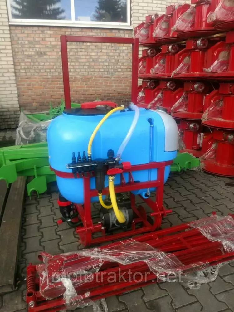 Резервуар для раствора, установленный в закрытую раму с раскидными штангами, удерживающие армированные шланги, с подсоединенными форсунками, идущие от распределителя с высокоточным глицериновым манометром. Подача жидкостей происходит за счет насоса, приводящегося в работу от вала отбора мощности. Имеет четырехступенчатую систему фильтрации. Агрегатируются с тракторами от 15 до 50 л.с., в зависимости от объема бака.
