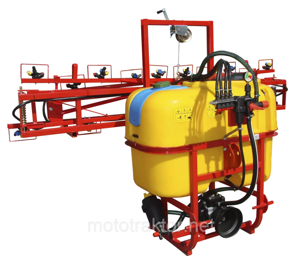 Резервуар для раствора, установленный в закрытую раму с раскидными штангами, удерживающие армированные шланги, с подсоединенными форсунками, идущие от распределителя с высокоточным глицериновым манометром. Подача жидкостей происходит за счет насоса, приводящегося в работу от вала отбора мощности. Имеет четырехступенчатую систему фильтрации. Агрегатируются с тракторами от 15 до 50 л.с., в зависимости от объема бака.