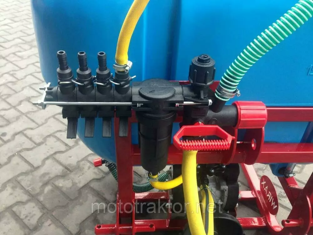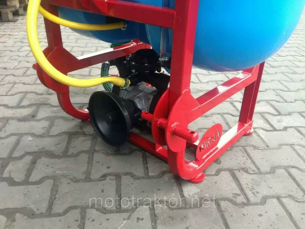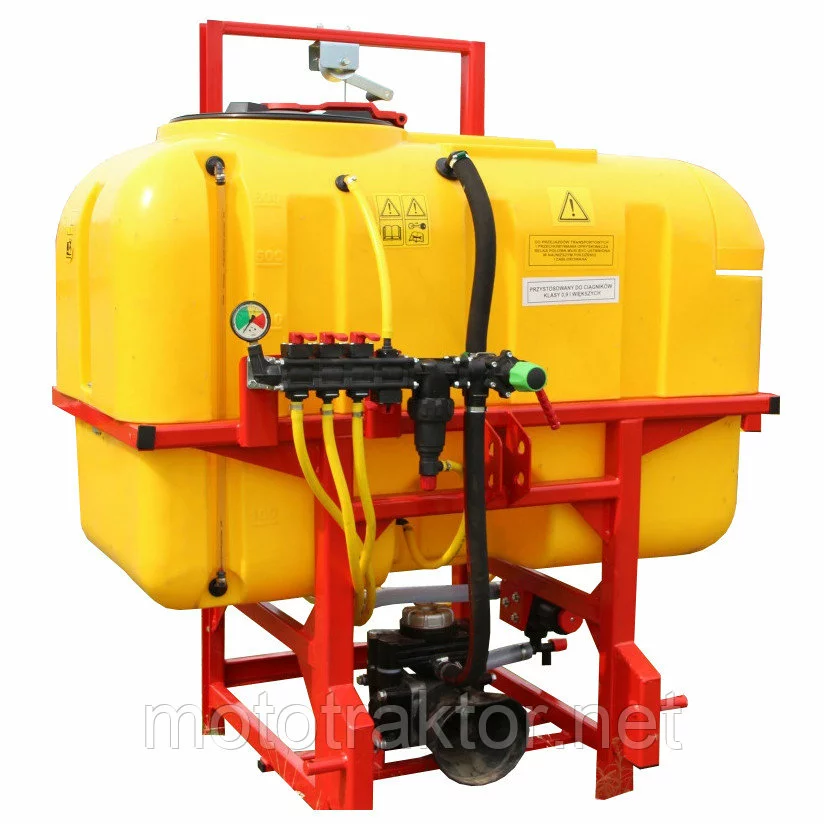 Резервуар для раствора, установленный в закрытую раму с раскидными штангами, удерживающие армированные шланги, с подсоединенными форсунками, идущие от распределителя с высокоточным глицериновым манометром. Подача жидкостей происходит за счет насоса, приводящегося в работу от вала отбора мощности. Имеет четырехступенчатую систему фильтрации. Агрегатируются с тракторами от 15 до 50 л.с., в зависимости от объема бака.