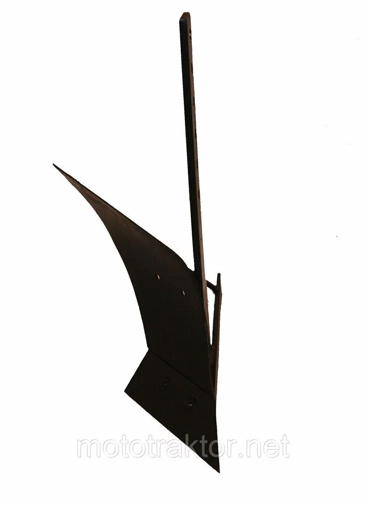 Стойкая плуга сделана из стальной полосы размером 10×50×500 мм, что гарантирует надежность и выдерживает значительные нагрузки во время вспашки. Полевая доска, размером 8×40×420 мм, обеспечивает правильное направление движения плуга в земле и стабильность работы. Отвал, размерами 3×260×440 мм, эффективно переворачивает почву, делая ее более рыхлой и пригодной для дальнейших агротехнических работ.