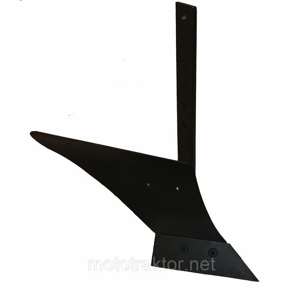 Стойкая плуга сделана из стальной полосы размером 10×50×500 мм, что гарантирует надежность и выдерживает значительные нагрузки во время вспашки. Полевая доска, размером 8×40×420 мм, обеспечивает правильное направление движения плуга в земле и стабильность работы. Отвал, размерами 3×260×440 мм, эффективно переворачивает почву, делая ее более рыхлой и пригодной для дальнейших агротехнических работ.