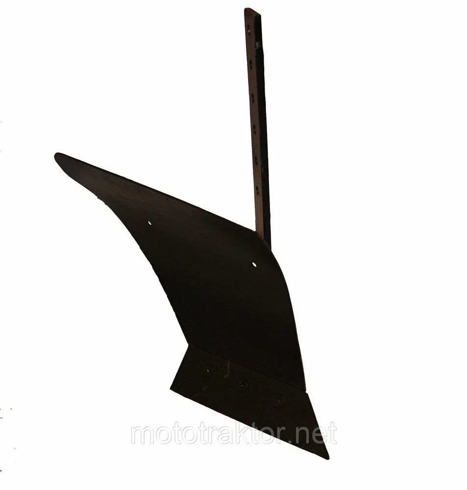 Ширина захвата плуга – 175 мм, чего достаточно для эффективной обработки как легких, так и средних грунтов. Корпус плуга цельносварной, изготовлен из прочной конструкционной стали, что гарантирует устойчивость к деформациям даже при интенсивной нагрузке. Основными элементами являются стойка, отвал с лемехом, полевая доска и распорка, которые обеспечивают точность и стабильность при работе.
