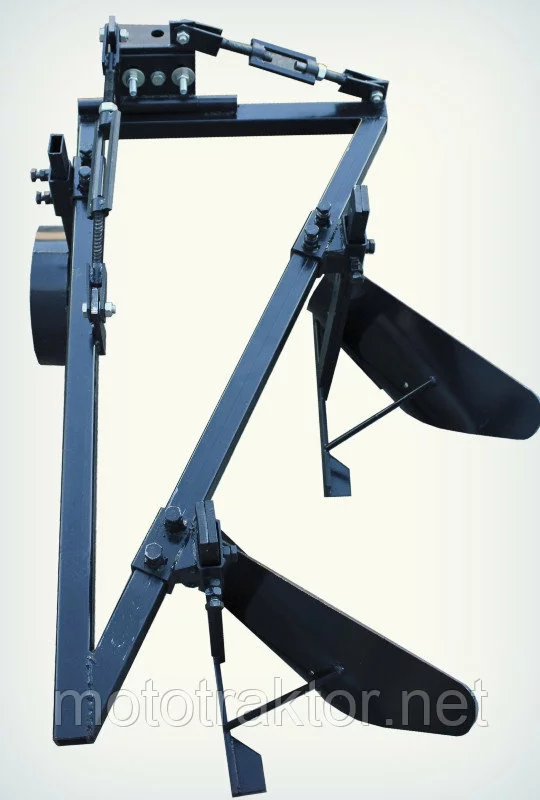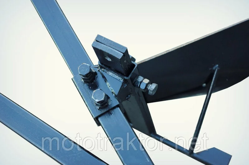 Рама изготовлена из стального профиля 40х40х3 мм, что гарантирует жесткость и долговечность конструкции. Для точной настройки положения плуга в продольной и поперечной плоскостях он оснащен двумя талрепами, позволяющими достичь идеального угла атаки корпусов в грунте.