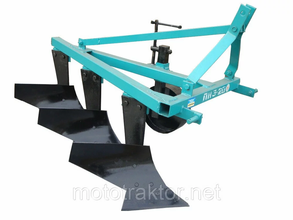ПН-3-20 изготовлен из квадратного профиля марки стали высокого класса, имеет усиленные сварные швы и изностойкую покраску. Крепление данного плуга под трёхточечную навесную систему для трактора или минитрактора. Конструкция позволяет эффективно использовать плуг для целевых назначений.