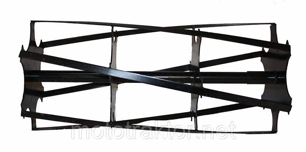 Ротационная борона состоит из двух секций с разным углом наклона пластин. Каждая секция имеет крепкий вал, заканчивающийся посадочной втулкой с отверстием под стопорный палец. На валу установлены четыре поперечных диска с пазами, к которым приварены шесть режущих пластин. Именно такая конструкция обеспечивает равномерное измельчение и перемешивание грунта без пробелов.